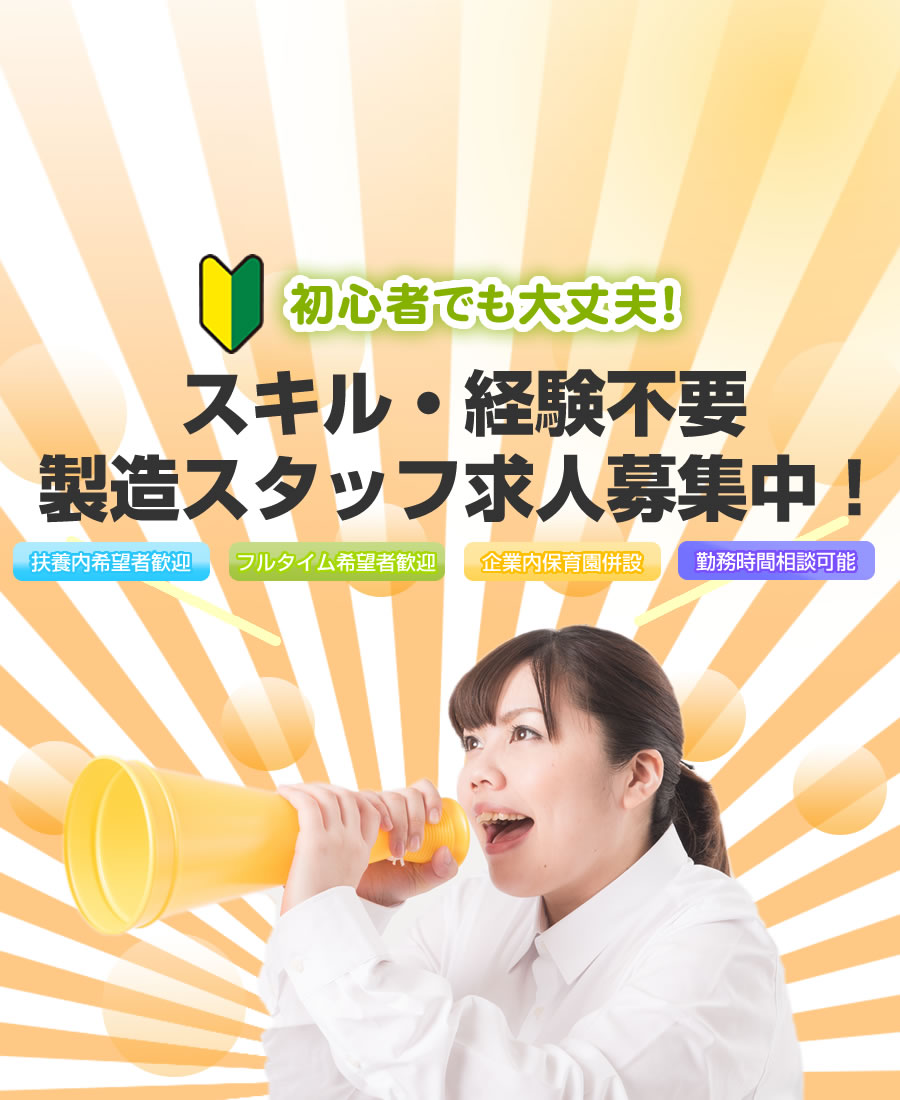 当サイトの運営元である大陽工業所での製造スタッフだけではなく、派遣スタッフも募集しています。